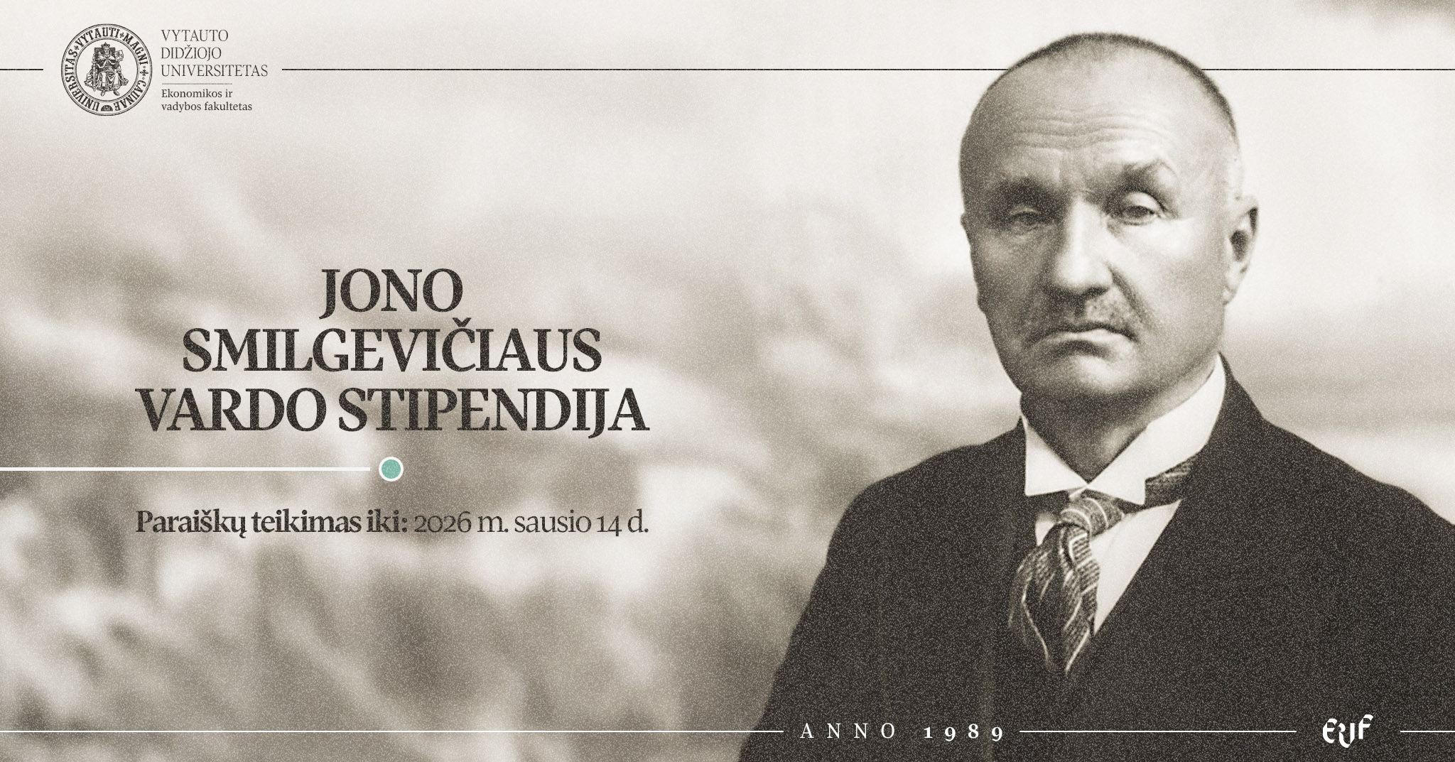 Vytauto Didžiojo universiteto Ekonomikos ir vadybos fakultetas kviečia savo studentus teikti paraiškas prestižinei Jono Smilgevičiaus vardo stipendijai. Šiemet ji bus skiriama jau 25-ąjį kartą, taip tęsiant beveik ketvirtį amžiaus gyvuojančią fakulteto tradiciją skatinti gabius, atsakingus ir vertybiškai stiprius jaunuosius ekonomikos ir vadybos lyderius.